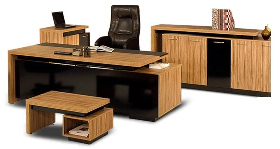 الخامة: تم تشطيب الطقم بقشرة خشب الماهوغاني (mahogany veneer) ويتضمن حشوات ولمسات جلدية. - التصميم: يتميز المكتب بسطح سميك يبلغ 80 ملم وتصميم يجمع بين الفخامة والعملية.