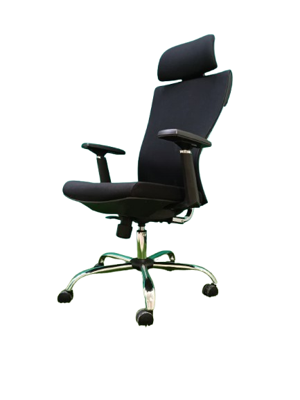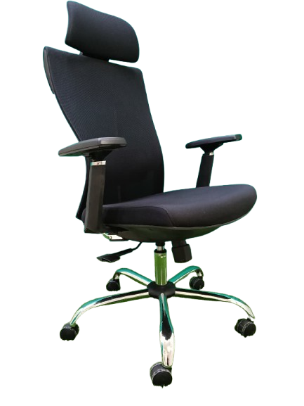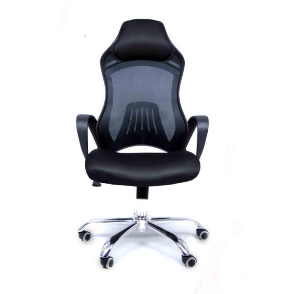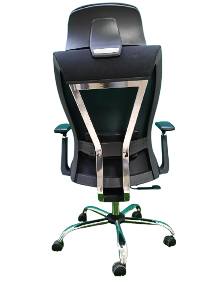 - الخامات: يتميز بظهر من الشبك (Mesh) عالي الجودة للتهوية ومنع التعرق، مع قاعدة نجمية معدنية (كروم) متينة لضمان الثبات.