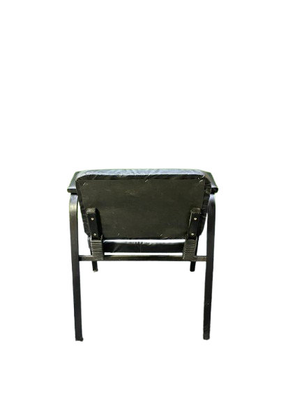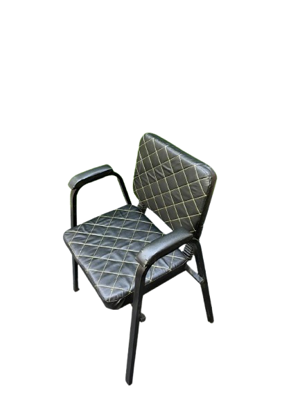 كرسي استقبال أو انتظار إيطالي، وهو مصمم عادةً للاستخدام في المكاتب، العيادات، أو قاعات المحاضرات. يتميز الكرسي بتصميمه المتين المكون من هيكل فولاذي وتنجيد جلدي بنقشة كابيتونيه مربعة.