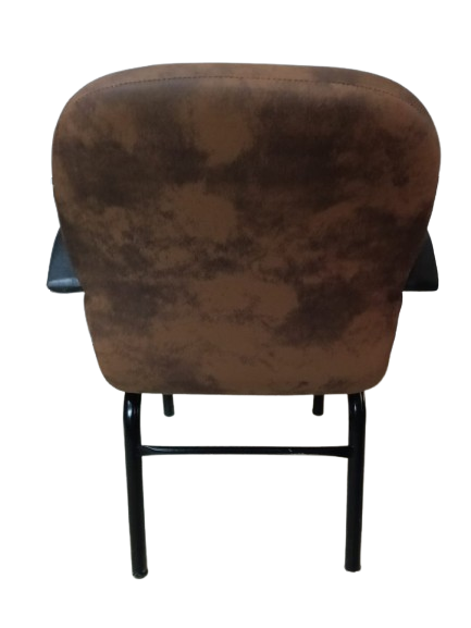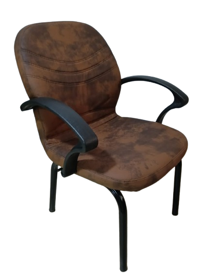 - المادة: مغطى بجلد صناعي (قد يكون شمواه صناعي أو قماش بملمس الجلد)، مع إطار وأرجل معدنية سوداء ثابتة ومساند يد بلاستيكية سوداء.